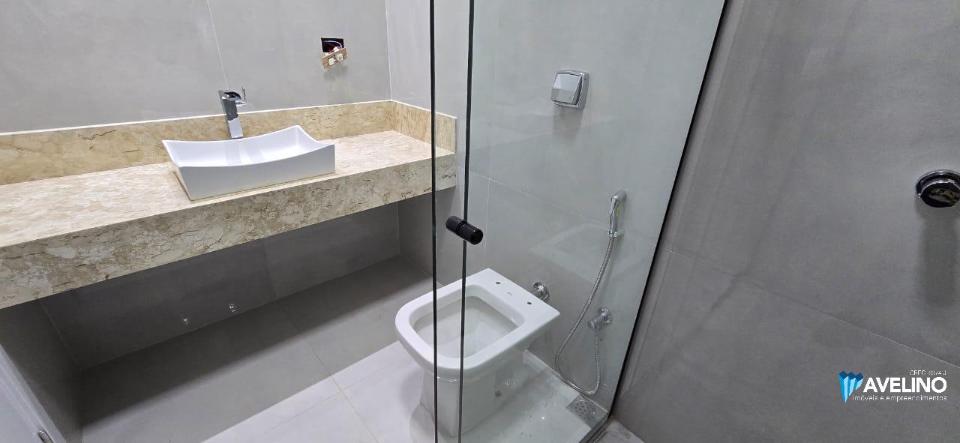 E mais três quartos com banheiro.